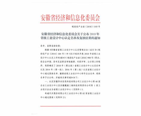 關(guan)于公布2018年(nian)省級工業設(she)計中心認定名單的通知