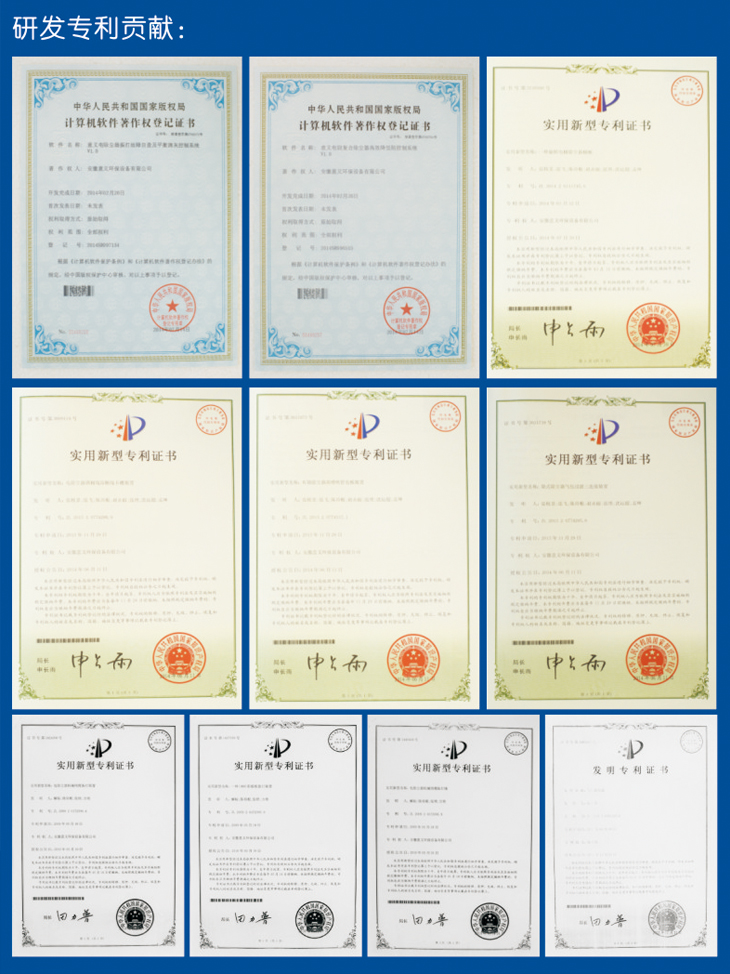 技術研發中心匯集了環保行業領域的技術精英,具有豐富的行業經驗,擁有技術研研發人員56人,碩士、博士、高級工程師以上專家16人,本科以上學歷占總人數的75%,已取得國家專利12項,正在積極申報專利8項。