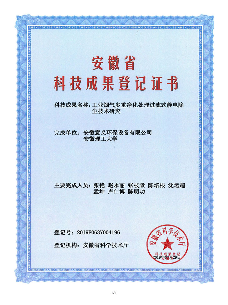 公司自成立以來,一直致力于先進的除塵技術研究,選派一批技術骨干到美國EE公司學習、培訓,培養了一批高素質人才隊伍,成立了技術研發中心,博士、研究生占16%,本科占36%,專科占28%。與合肥工業大學、安徽理工大學、中國凱盛等科研院所合作,開展技術研發活動。于2008年被認定為省級企業技術中心,2012年成立安徽省氣體凈化工程技術中心,先后搭建了氣流分布試驗臺、振打實驗臺、旋轉電極試驗臺,結合實驗原理、計算機模擬,對重大技術課題進行攻關。