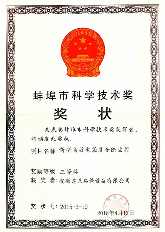 蚌埠市科學技術進步獎-三等獎