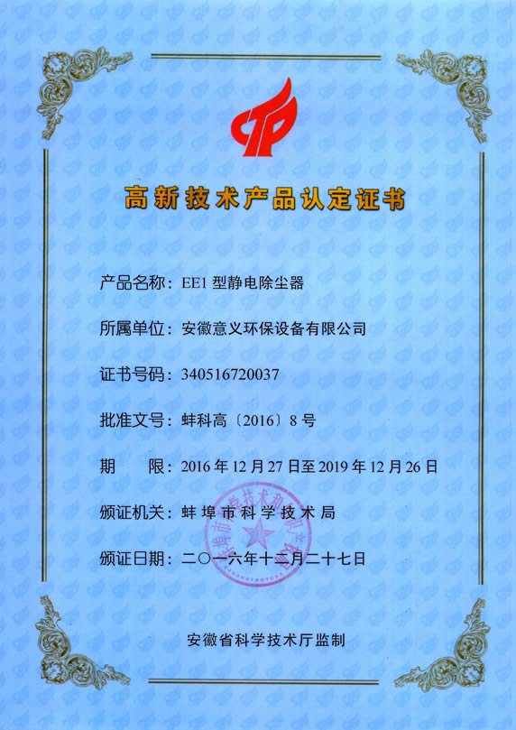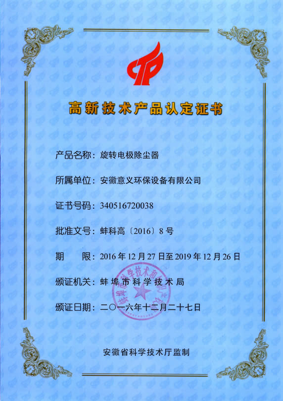 高新技術產品認定證書