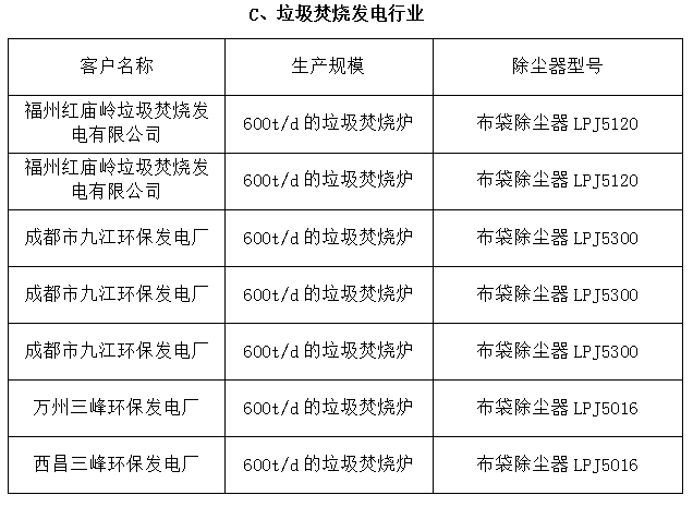 垃圾焚燒發電行業業績表