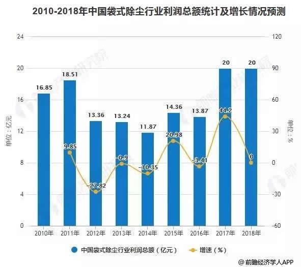 市場規模方面,2014年以來,我國袋式除塵器市場規模重新恢復增長,到2018年行業總產值預計約180億元,總產值增長率12.5%。不過,袋式除塵行業是一個充分競爭行業,殘酷的市場競爭致使行業盈利水平低下、本大利薄,2018年行業利潤約為20億元,與去年持平,利潤率只有11%。