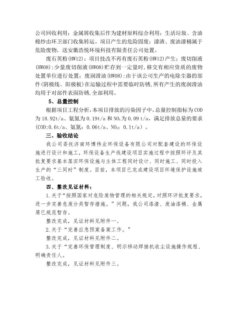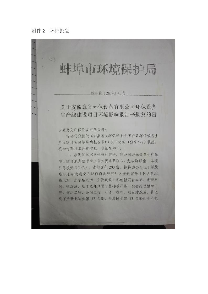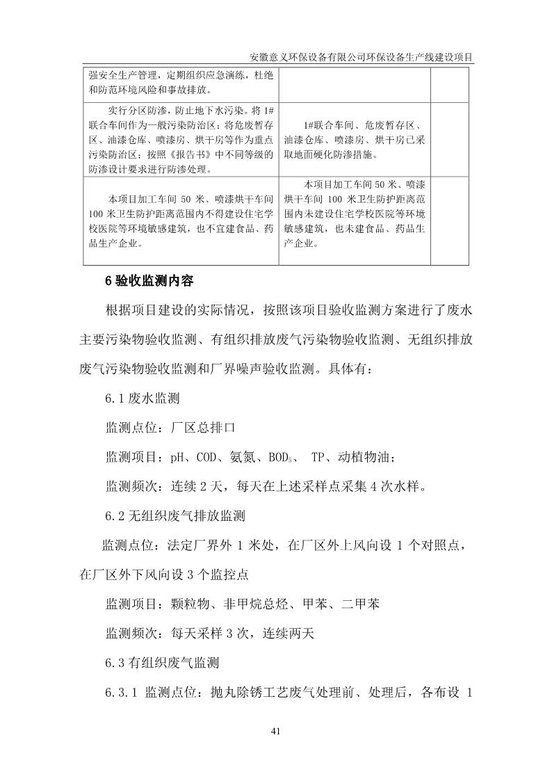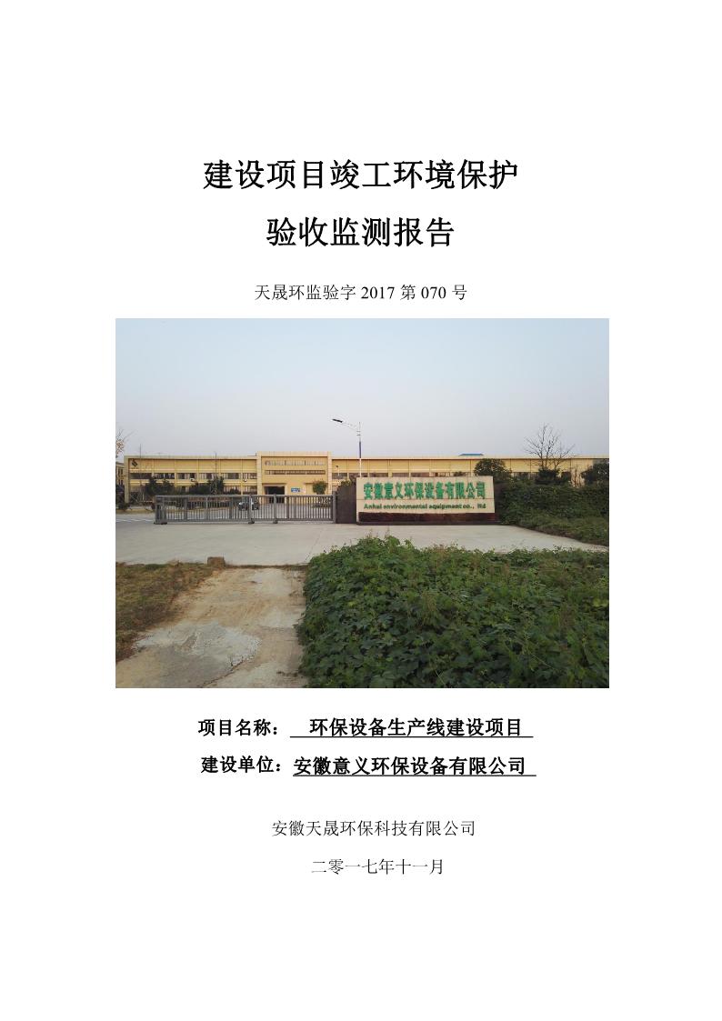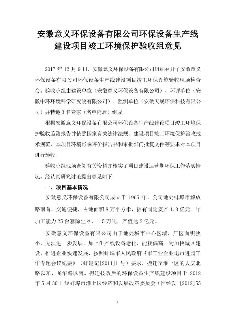 安徽意義環保設備有限公司環保設備生產線建設項目竣工環境保護驗收意見