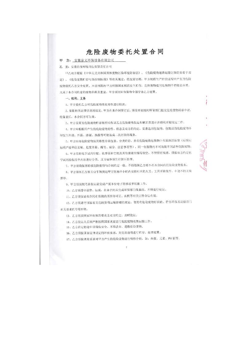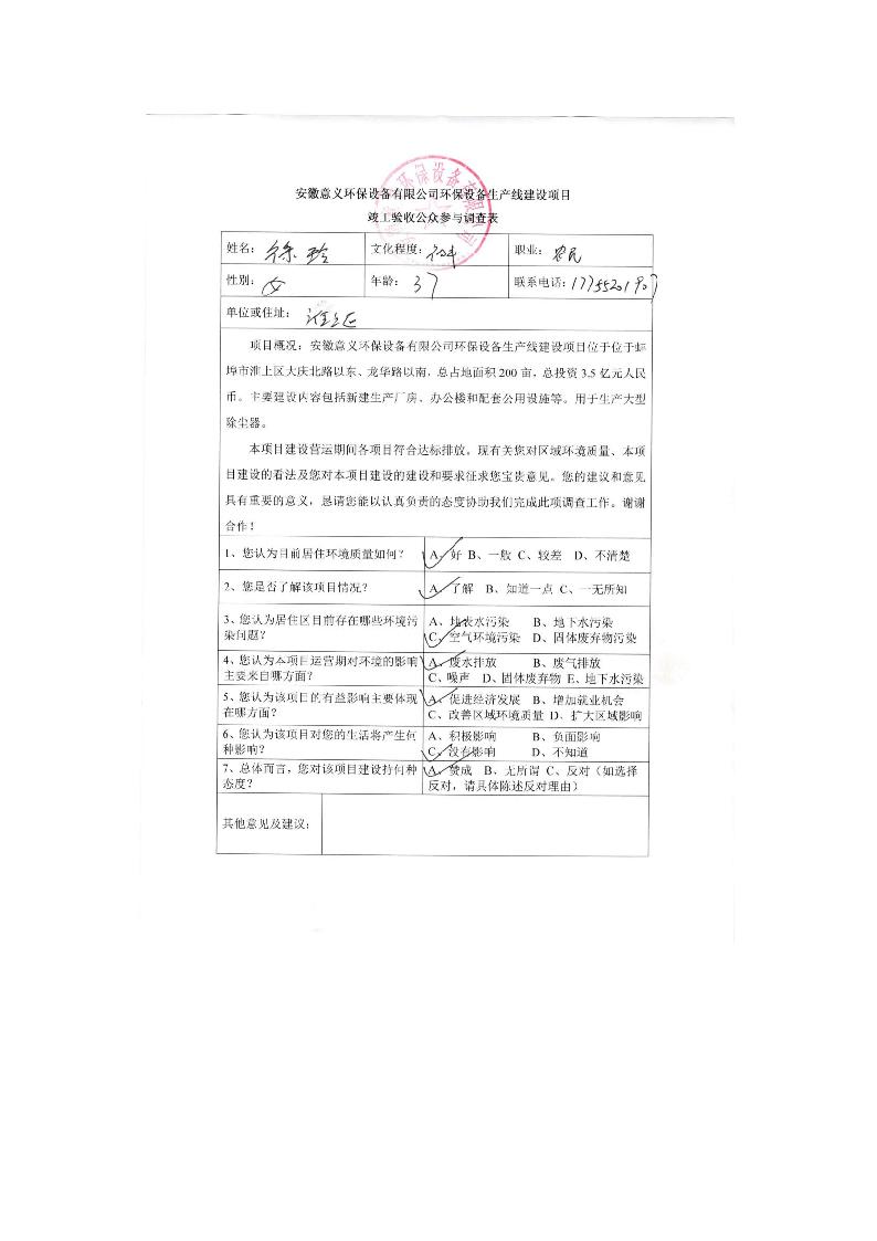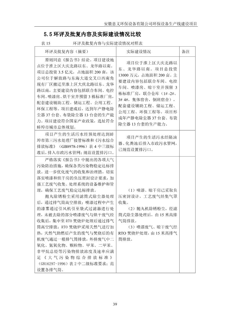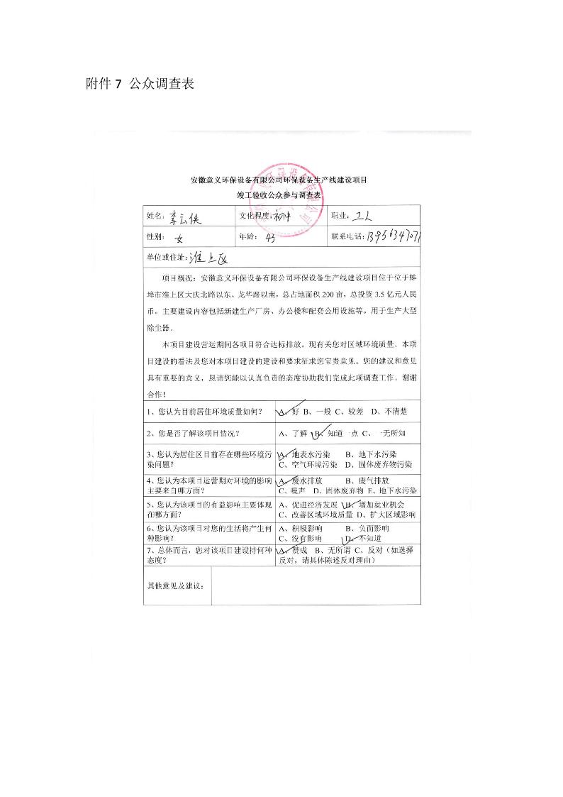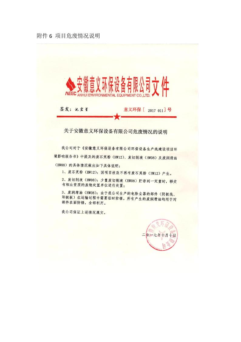 安徽意義環保設備有限公司環保設備生產線建設項目竣工環境保護驗收意見